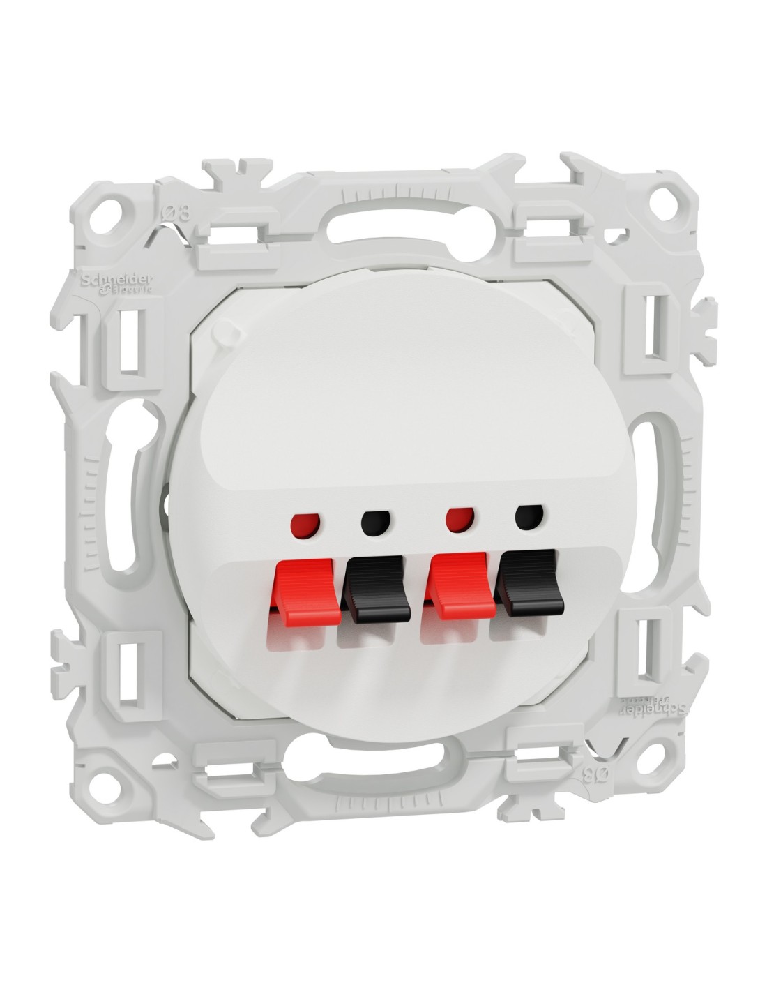 Odace - prise haut-parleurs double 2 sorties - 4 poussettes identifiées noir/rouge - Gamme Odace 2025 - Non compatible avec Odace 2011