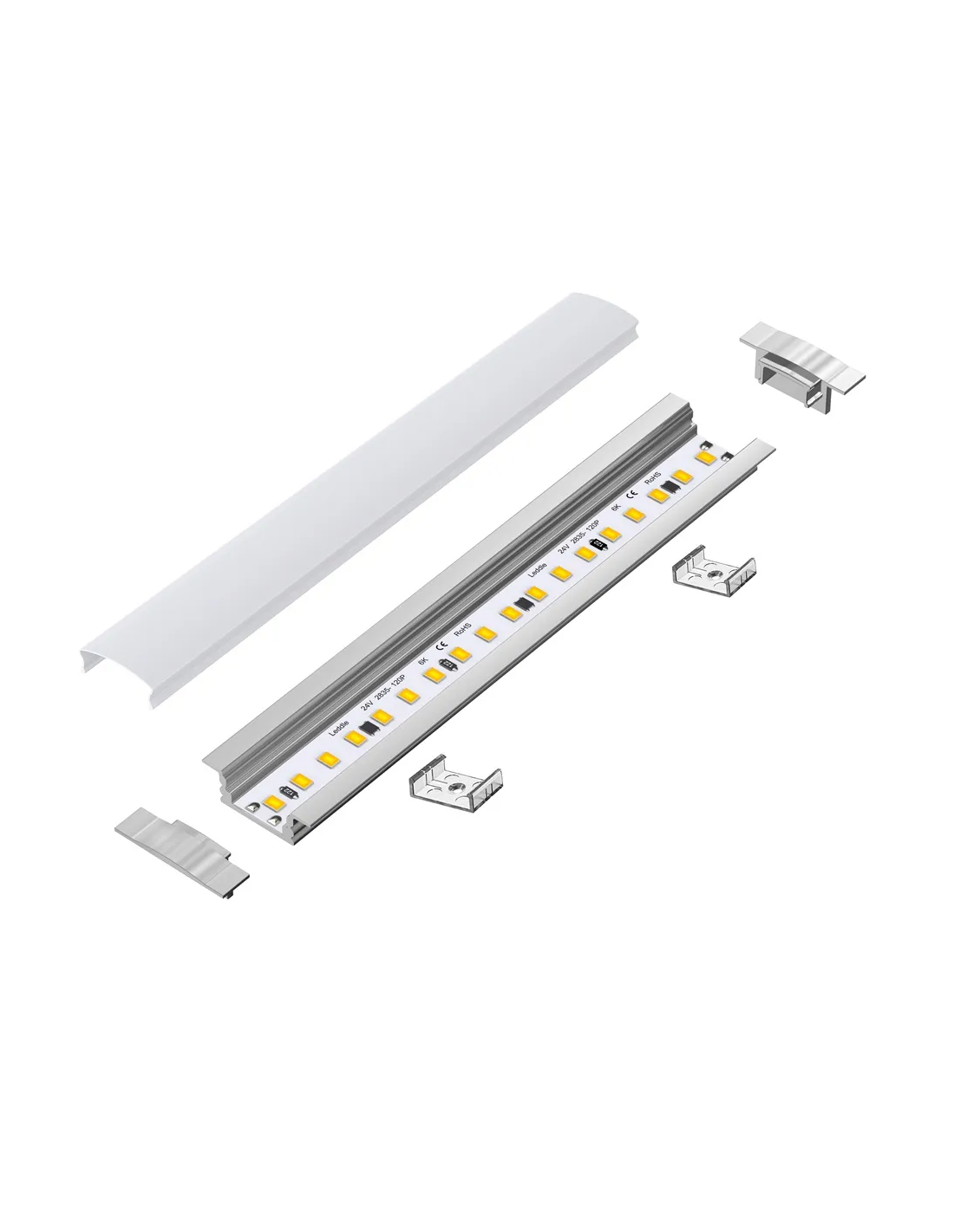 Profilé en aluminium de 1 mètre encastrable pour ruban LED - MDF, cloison sèche, carrelage - ALU
