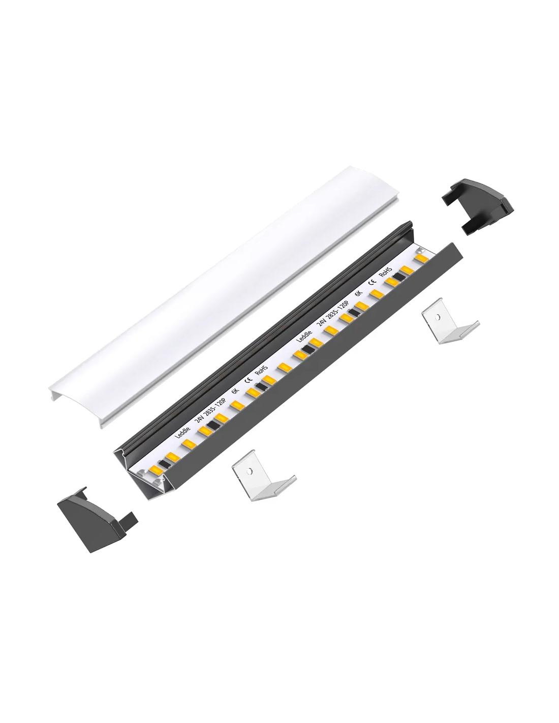 Profilé d'angle en aluminium de 2 mètres pour ruban LED - Noir