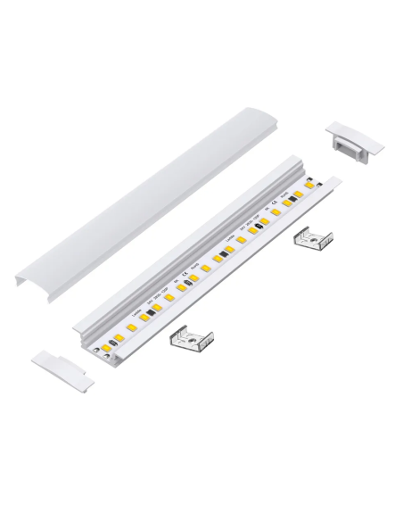 Profilé en aluminium de 2 mètres encastrable pour ruban LED - MDF, cloison sèche, carrelage - Blanc