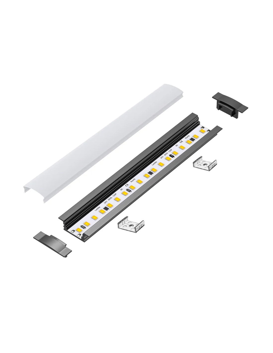 Profilé en aluminium de 1 mètre encastrable pour ruban LED - MDF, cloison sèche, carrelage - Noir