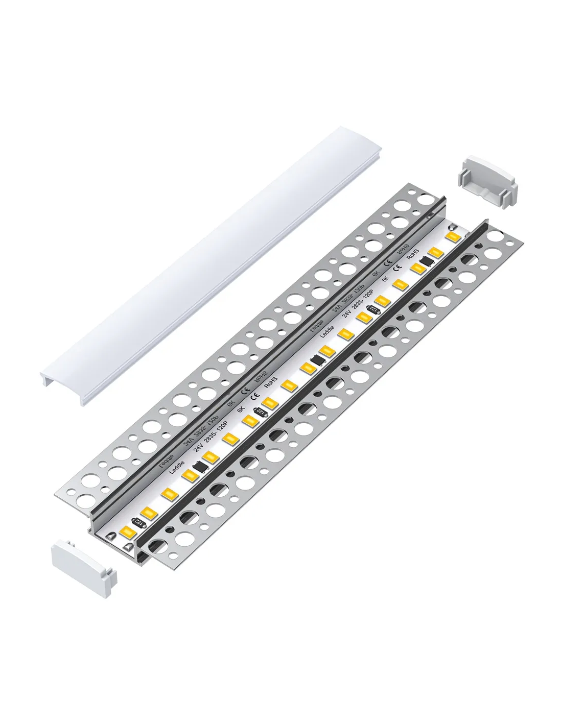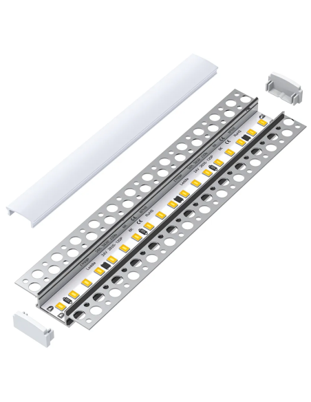 Profilé en aluminium pour plâtre de 2 mètres pour bande LED pour cloison sèche - LARGE - ALU